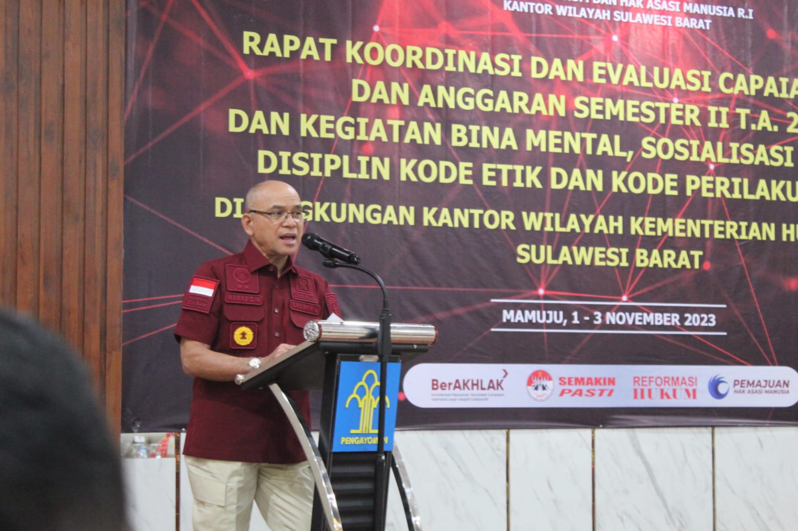 Hal itu disampaikannya pada penyelenggaraan Rapat Koordinasi dan Evaluasi Capaian Kinerja dan Anggaran Semester II Tahun Anggaran 2023 di Aula Pengayoman, Kamis (2/11/2023).