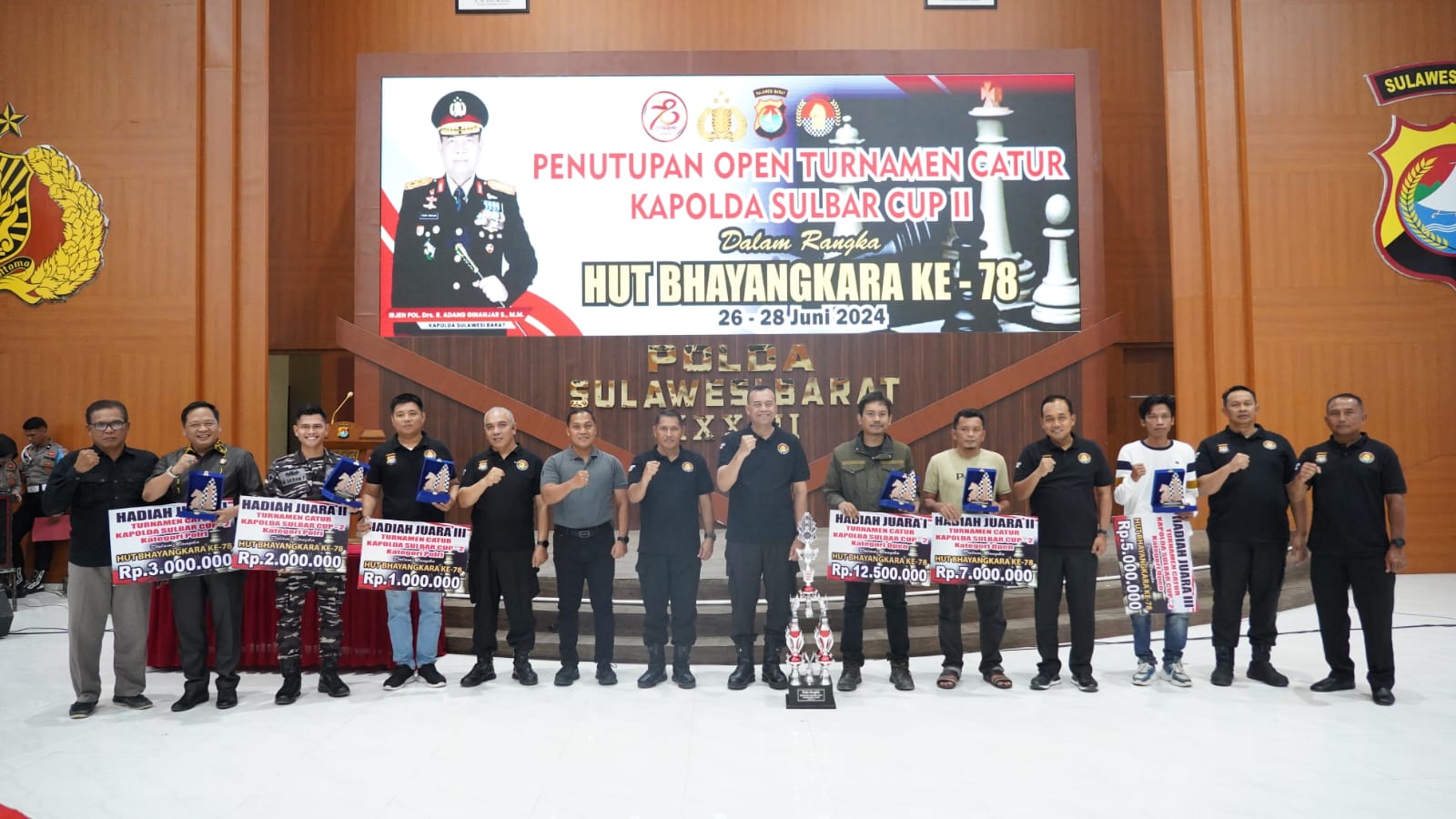 Mamuju,RelasiPublik.id–Turnamen Catur Kapolda Sulbar Cup II dalam rangka peringatan semarak Hari Bhayangkara Ke-78 Tahun 2024 ditutup dengan meriah oleh Kapolda Irjen Pol Adang Ginanjar, Jumat (28/6/24) di aula Marannu Mapolda.