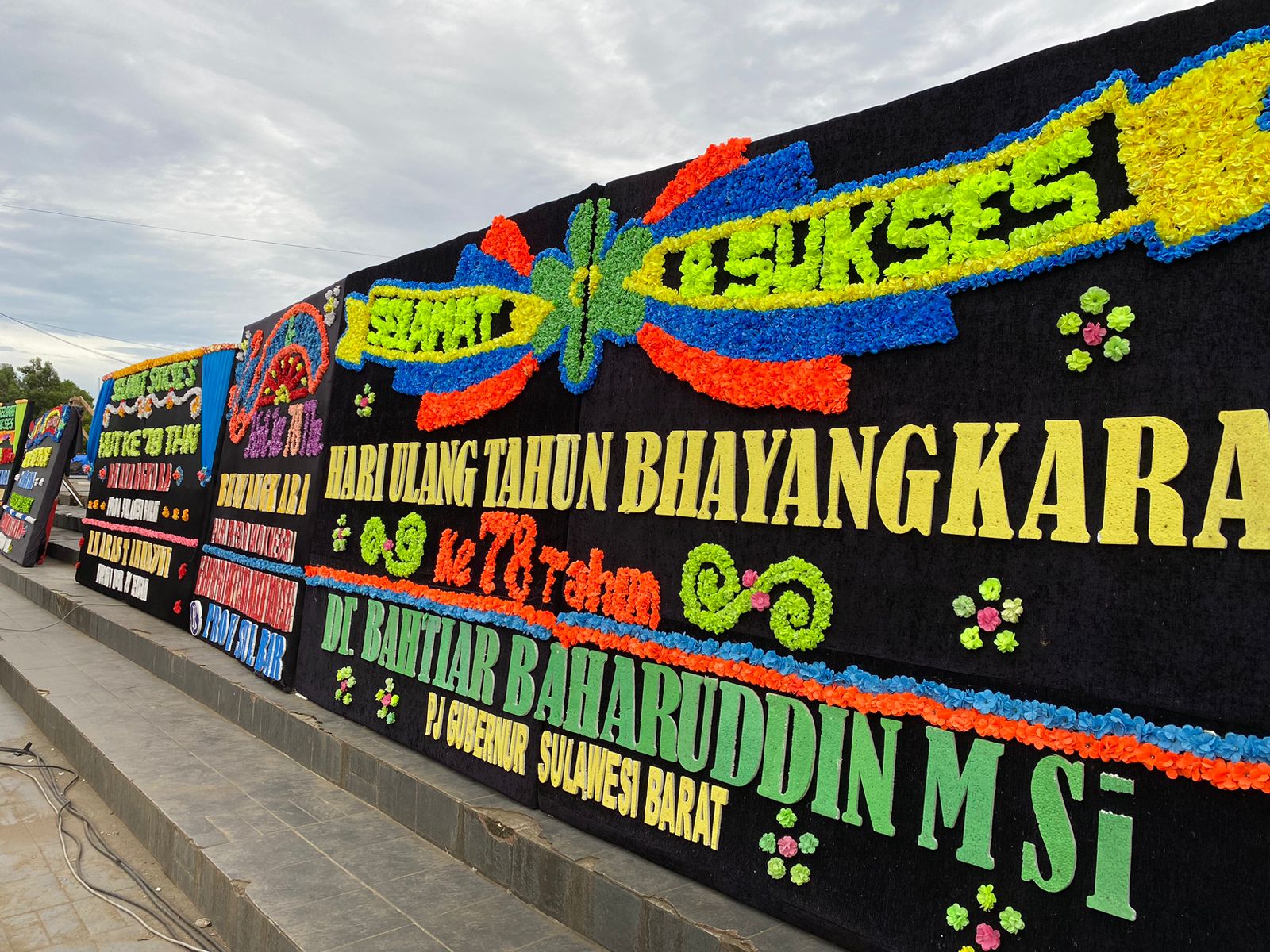Tak hanya di anjungan pantai Manakarra, Karangan bunga ucapan selamat hari Bhayangkara juga berjejer di Mako Polda dan sekitar Ball Room hotel Maleo yang nantinya akan digunakan pada kegiatan syukuran sebagai rangkaian hari bhayangkara.