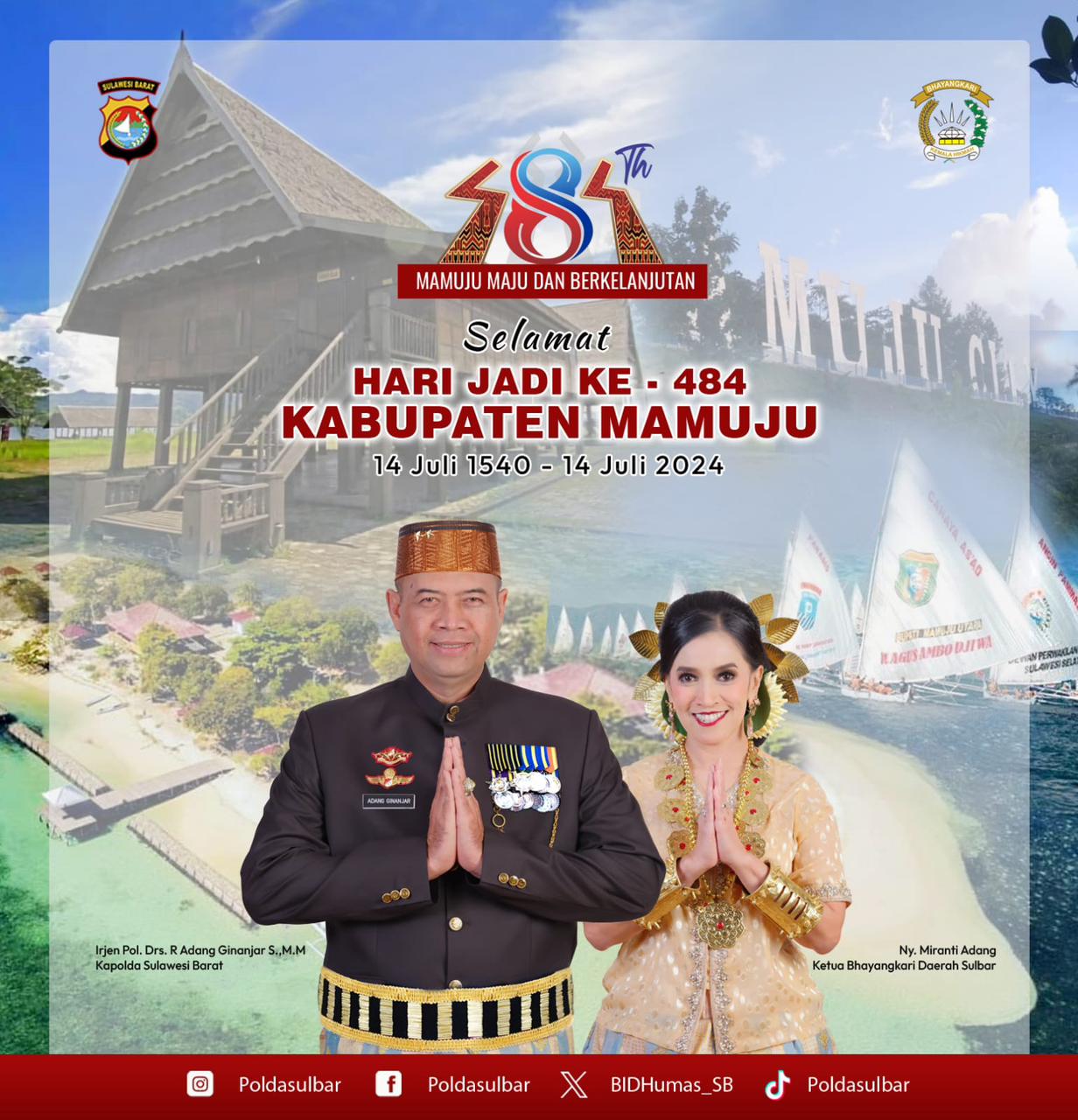 “Kami segenap keluarga besar Kepolisian daerah Sulawesi barat mengucapkan selamat hari jadi Mamuju yang ke 484 semoga Mamuju semakin keren,” tutur Kapolda.