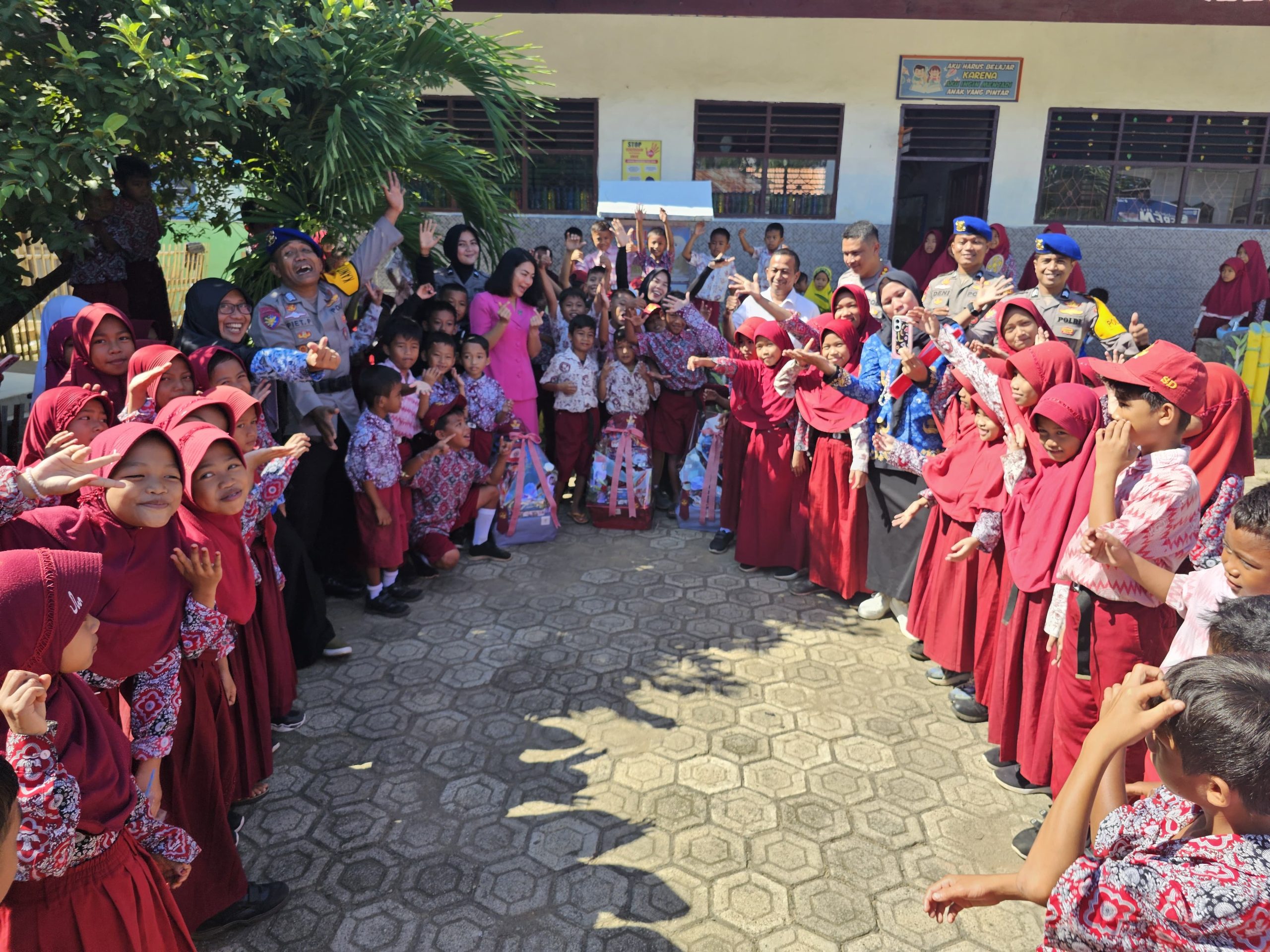 “Terima kasih kepada bapak polisi dan ibu Bhayangkari atas seragam barunya. Saya jadi lebih semangat belajar,” ujarnya dengan riang gembira.