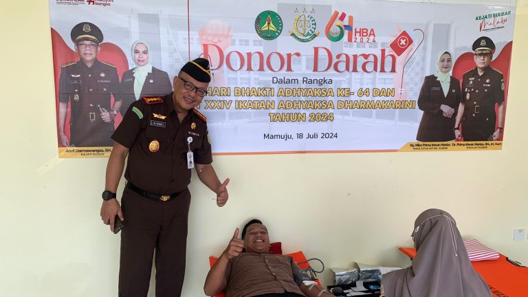 Kajari Mamuju, R. Raharjo Yusuf Wibisono mengatakan bakti sosial (baksos) donor darah ini dilakukan dalam rangka peringatan Hari Bhakti Adhyaksa (HBA) ke-64 tahun.