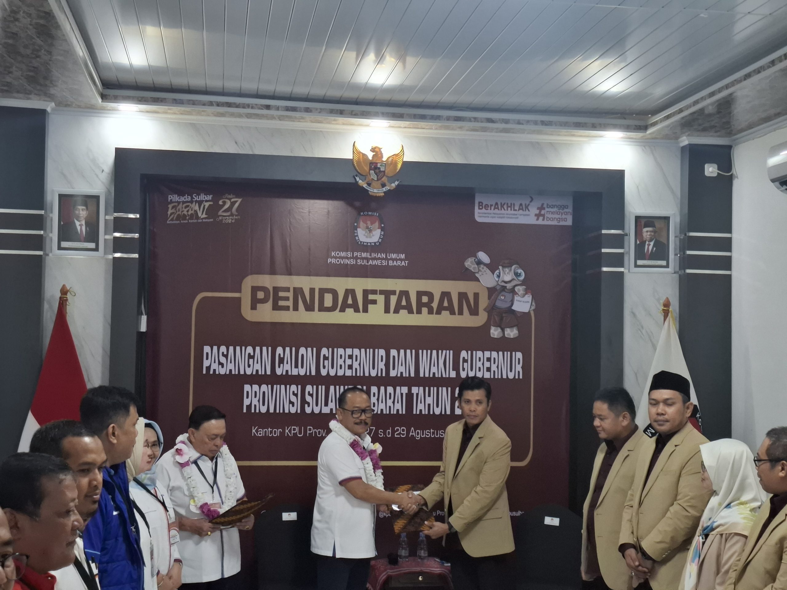 Pendaftaran berlangsung di Kantor KPU Sulbar Jl Soekarno Hatta, Kelurahan Karema, Kecamatan Mamuju,Kabupaten Mamuju, Rabu (28/8/2024).