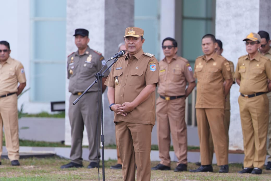 MAMUJU, RelasiPublik.id-Penjabat Gubernur Sulawesi Barat Bahtiar Baharuddin memimpin upacara pagi di kompleks perkantoran Gubernur, Selasa 19 November 2024.