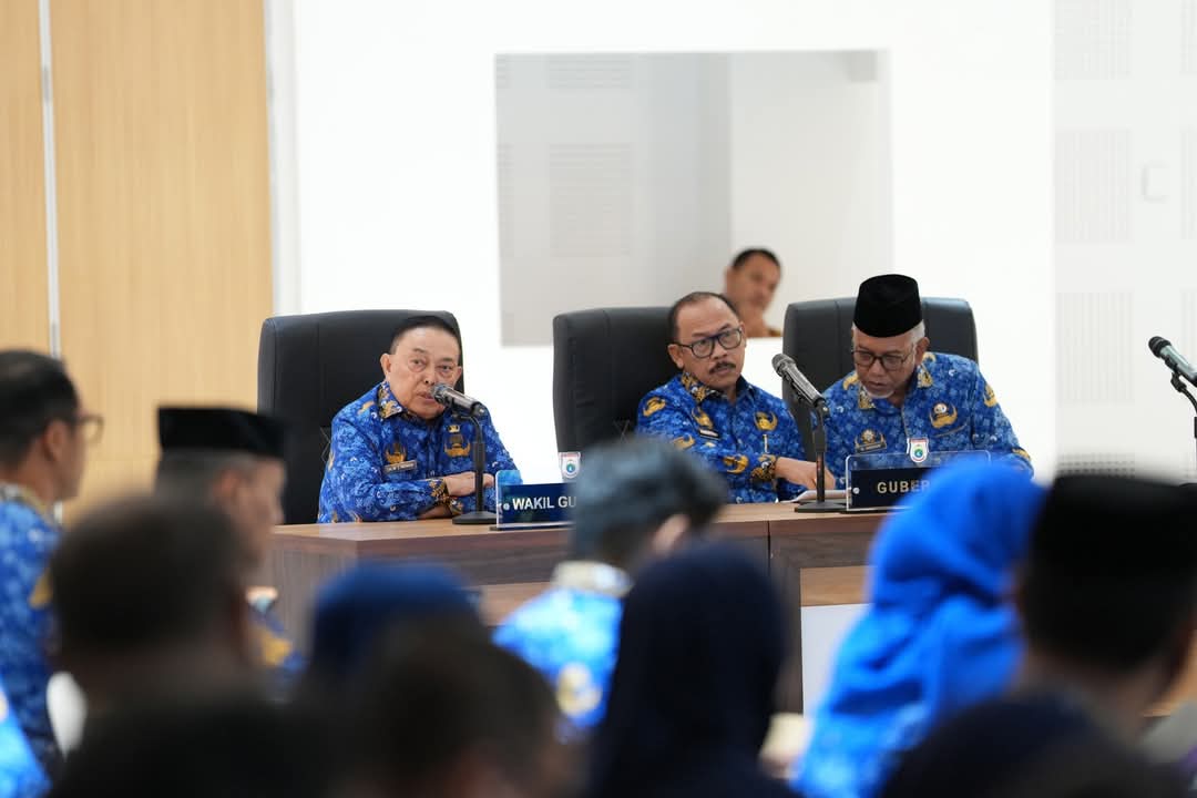 Rapat yang dipimpin Gubernur Sulbar, Suhardi Duka (SDK) didampingi Wakil Gubernur Sulbar, Salim S Mengga dan Pelaksana Harian Sekretaris Provinsi Sulbar, Herdin Ismail, dihadiri seluruh kepala Organisasi Perangkat Daerah (OPD), serta pejabat eselon tiga.