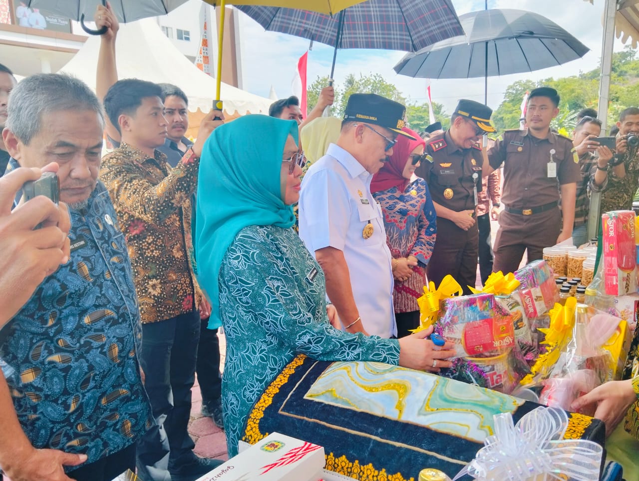 MAMUJU, RelasiPublik.id – Ketua Tim Penggerak (TP) Pembinaan Kesejahteraan Keluarga (PKK) Sulawesi Barat (Sulbar), Harsinah Suhardi mendampingi Gubernur Sulbar, Suhardi Duka dalam melakukan peninjauan Gerakan Pangan Murah (GPM) di halaman Kantor Kejaksaan Tinggi (Kejati) Sulbar.