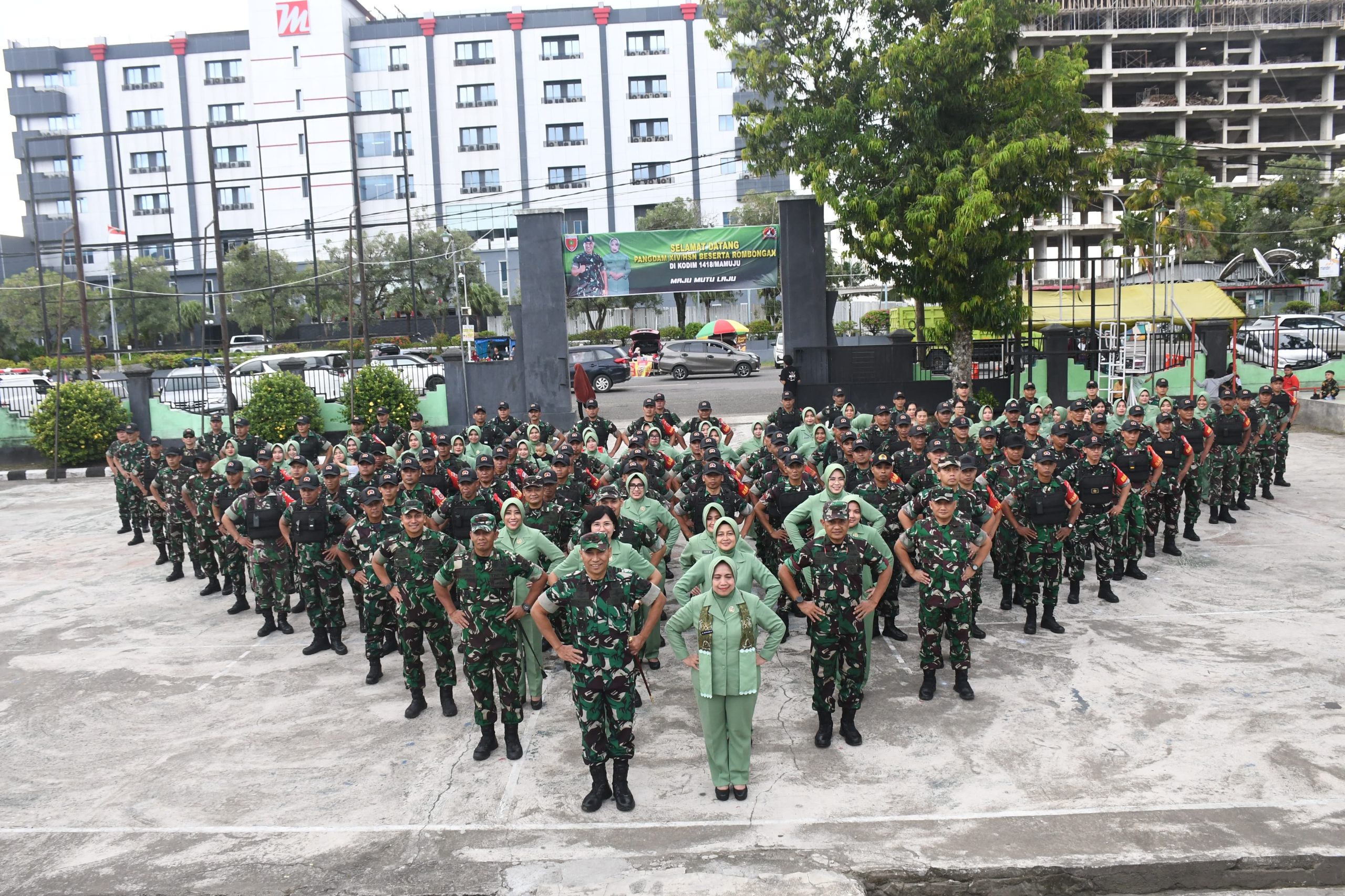 Mamuju – Pangdam XIV/Hasanuddin, Mayor Jenderal TNI Windiyatno, didampingi Ketua Persit Kartika Chandra Kirana Kodam XIV/Hasanuddin, Ny. Infita Windiyatno, beserta rombongan melaksanakan kunjungan kerja ke Kodim 1418/Mamuju.
