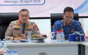 Pastikan Proses Transparan, Kapolda Sulbar Tinjau Langsung Tes Kesehatan Rekrutmen Polri Polda Sulbar – Kepala Kepolisian Daerah Sulawesi Barat, Irjen Pol Adi Deriyan Jayamarta, melakukan pemantauan langsung kegiatan tes kesehatan dalam rangka seleksi rekrutmen anggota Polri yang berlangsung di Aula Marannu Mapolda Sulbar, Kamis (16/4/26). Dalam peninjauan tersebut, Kapolda didampingi oleh Wakapolda Sulbar serta Direktur Reserse Kriminal Khusus (DirReskrimsus). Kedatangan pejabat utama Polda Sulbar ini disambut baik oleh panitia penyelenggara dan para peserta yang sedang mengikuti serangkaian tes. Terlihat secara langsung, Irjen Pol Adi Deriyan tidak hanya melihat jalannya proses, tetapi juga turun berinteraksi. Ia menyapa para peserta yang tengah menanti giliran pemeriksaan, serta mengecek kelengkapan administrasi dan kesiapan fasilitas medis yang digunakan. Dalam arahannya, Kapolda memberikan penekanan tegas kepada seluruh panitia dan tim pemeriksa untuk menjaga integritas tertinggi. Ia menekankan agar seluruh tahapan seleksi berjalan murni berdasarkan kemampuan dan sesuai dengan prinsip BETAH (Bersih, Transparan, Akuntabel dan Humanis). “Saya tidak mau ada kecurangan sedikitpun dalam proses ini. Mari kita sama-sama bekerja dengan ikhlas dan profesional,” tegas Kapolda. Lebih lanjut, Kapolda menyampaikan bahwa seleksi yang bersih dan objektif adalah kunci untuk mendapatkan calon anggota Polri yang berkualitas. “Tujuannya satu, yaitu agar harapan untuk mewujudkan generasi penerus Bhayangkara yang handal, profesional dan berintegritas dapat benar-benar terwujud,” tambahnya. Selain mengawasi panitia, Kapolda juga meluangkan waktu untuk memberikan motivasi dan dukungan moril kepada para peserta seleksi. Ia berpesan agar seluruh calon peserta tetap tenang, menjaga kesehatan dan mengerjakan seluruh tahapan tes dengan kemampuan terbaik mereka. Dengan adanya pengawasan langsung dari pimpinan tertinggi di lingkungan Polda Sulbar ini, diharapkan proses rekrutmen dapat berjalan lancar, menghasilkan putra-putri terbaik daerah, serta menjaga kepercayaan masyarakat terhadap institusi Polri. Humas Polda Sulbar