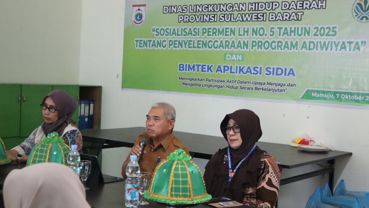 Mamuju, RelasiPublik.id – Dinas Lingkungan Hidup (DLH) Provinsi Sulawesi Barat (Sulbar) menggelar kegiatan Sosialisasi Peraturan Menteri Lingkungan Hidup (Permen LH) Nomor 5 Tahun 2025 tentang Penyelenggaraan Program Adiwiyata, dirangkaikan dengan Bimbingan Teknis (Bimtek) Aplikasi SiDia (Sistem Informasi Adiwiyata), Selasa 7 Oktober 2025.
