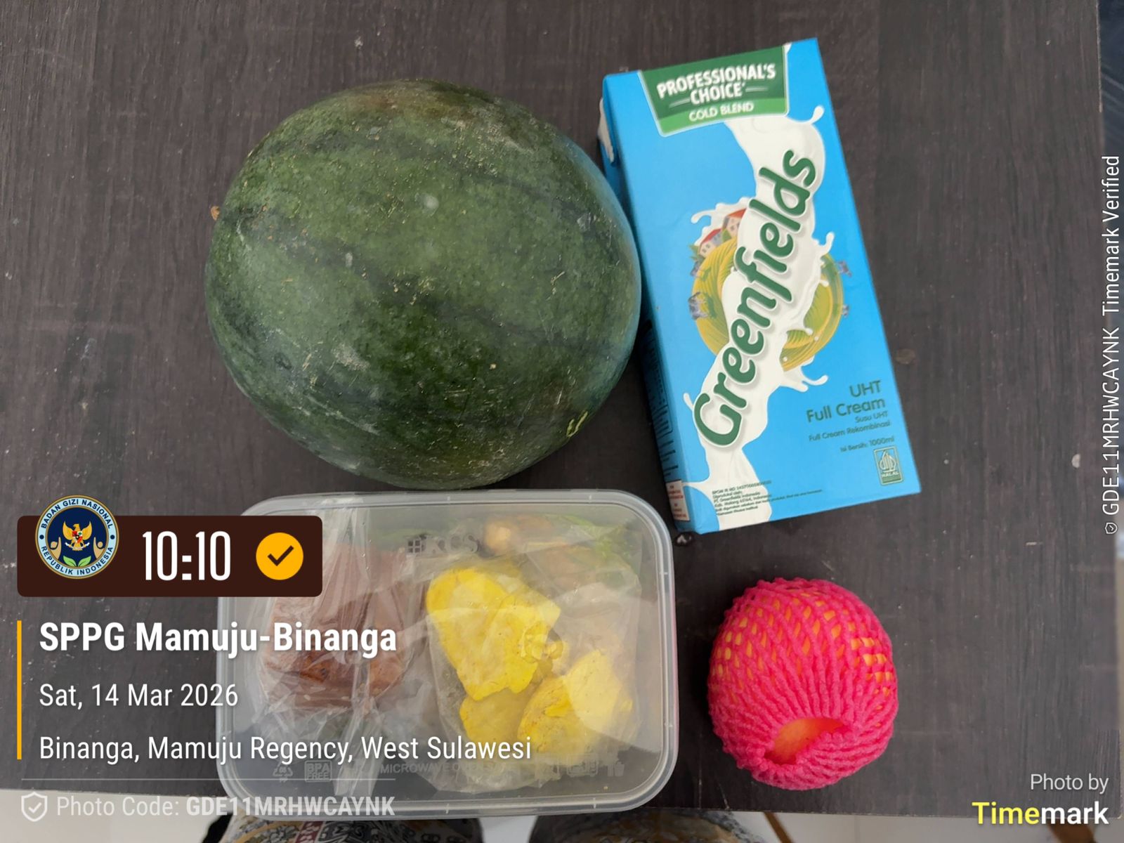 Paket makanan bergizi yang dibagikan kepada siswa tersebut berisi berbagai jenis makanan sehat, di antaranya semangka seberat 2,5 kilogram, susu 1 liter, tiga buah kue apel, tiga potong ayam, serta tiga potong tahu.