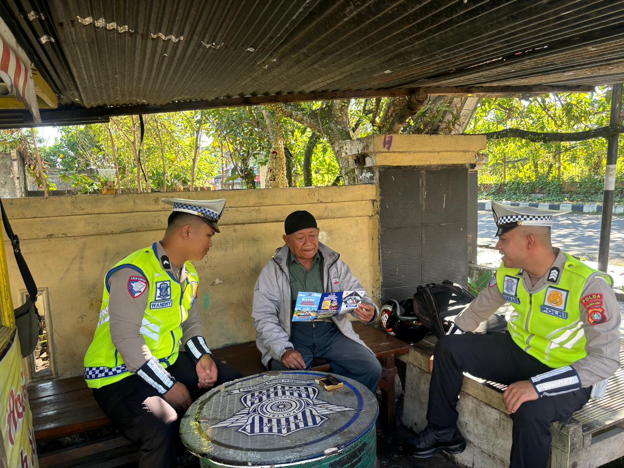 Selain berdialog, tim juga secara aktif membagikan leaflet berisi pesan-pesan keselamatan (Dikmas Lantas) kepada pengendara roda dua (R2) dan masyarakat yang melintas. Leaflet tersebut berisi informasi ringkas namun padat mengenai aturan dasar berlalu lintas yang mudah dipahami dan diingat.