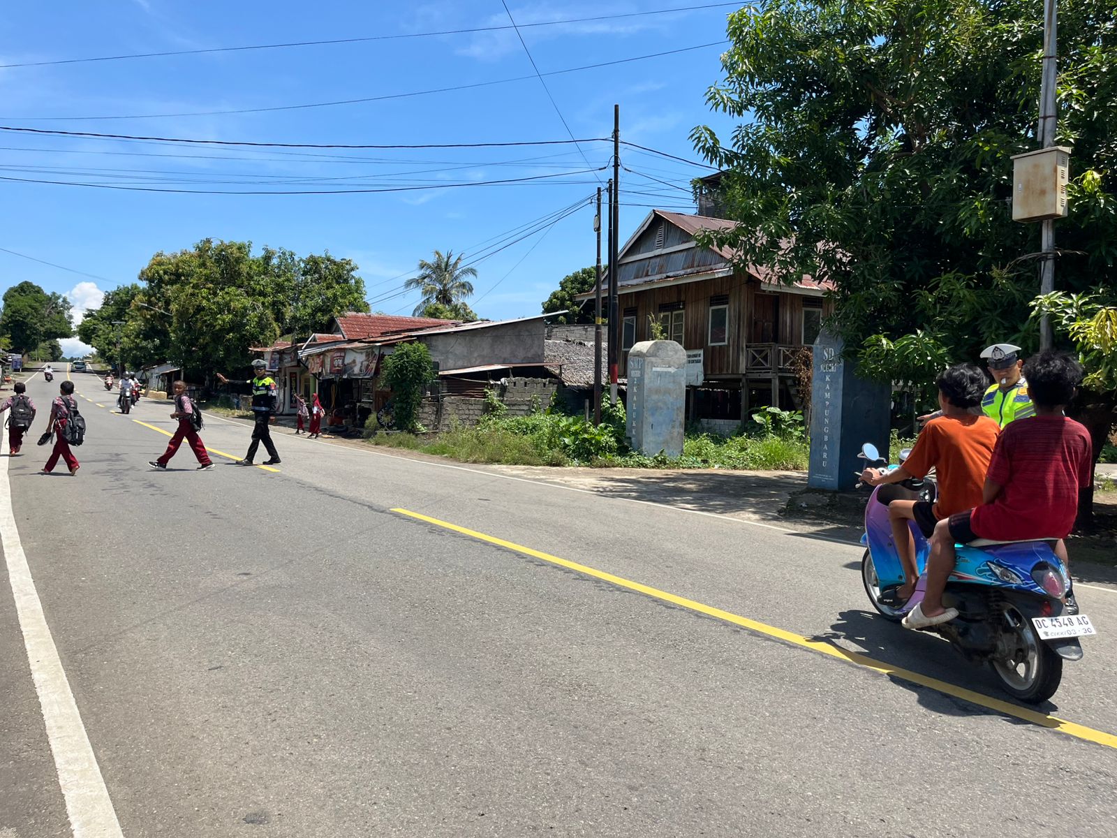 Kehadiran petugas di lokasi tidak hanya bertujuan untuk mengatur arus kendaraan agar lancar dan aman, tetapi juga sebagai sarana edukasi langsung kepada para pelajar mengenai pentingnya mematuhi rambu lalu lintas dan tertib berkendara.