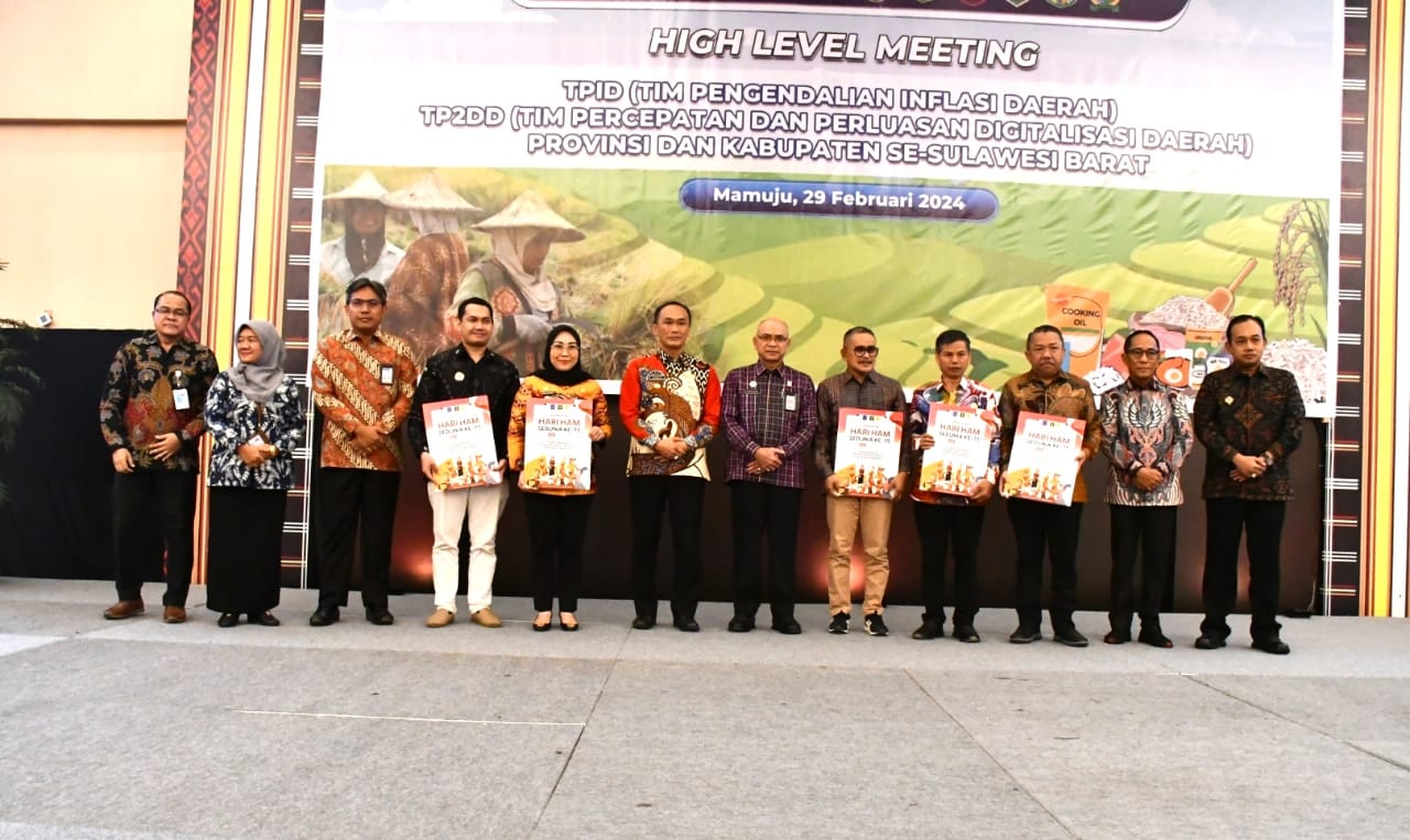 Acara tersebut juga dirangkaikan penyerahan Penghargaan Kabupaten Peduli HAM. Turut hadir Kantor Perwakilan Bank Indonesia, Badan Intelijen Daerah Provinsi Sulbar, Perwakilan Bupati se Sulbar, Perum Bulog, TIPD Provinsi dan Kabupaten, tim TP2DD, dan perbankan.