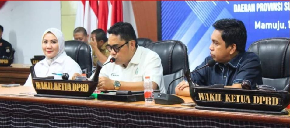 Rapat yang dipimpin oleh Wakil Ketua DPRD Provinsi Sulawesi Barat, H. Abdul Rahim, didampingi Ketua DPRD Sulawesi Barat, Dr. Hj. Siti Suraidah Suhardi dan Wakil Ketua DPRD Sulbar, H. Abdul Halim, serta dihadiri oleh para anggota DPRD, Gubernur Sulawesi Barat yang diwakili oleh Asisten III, serta perwakilan dari Organisasi Perangkat Daerah (OPD) terkait. 13 Agustus 2024.