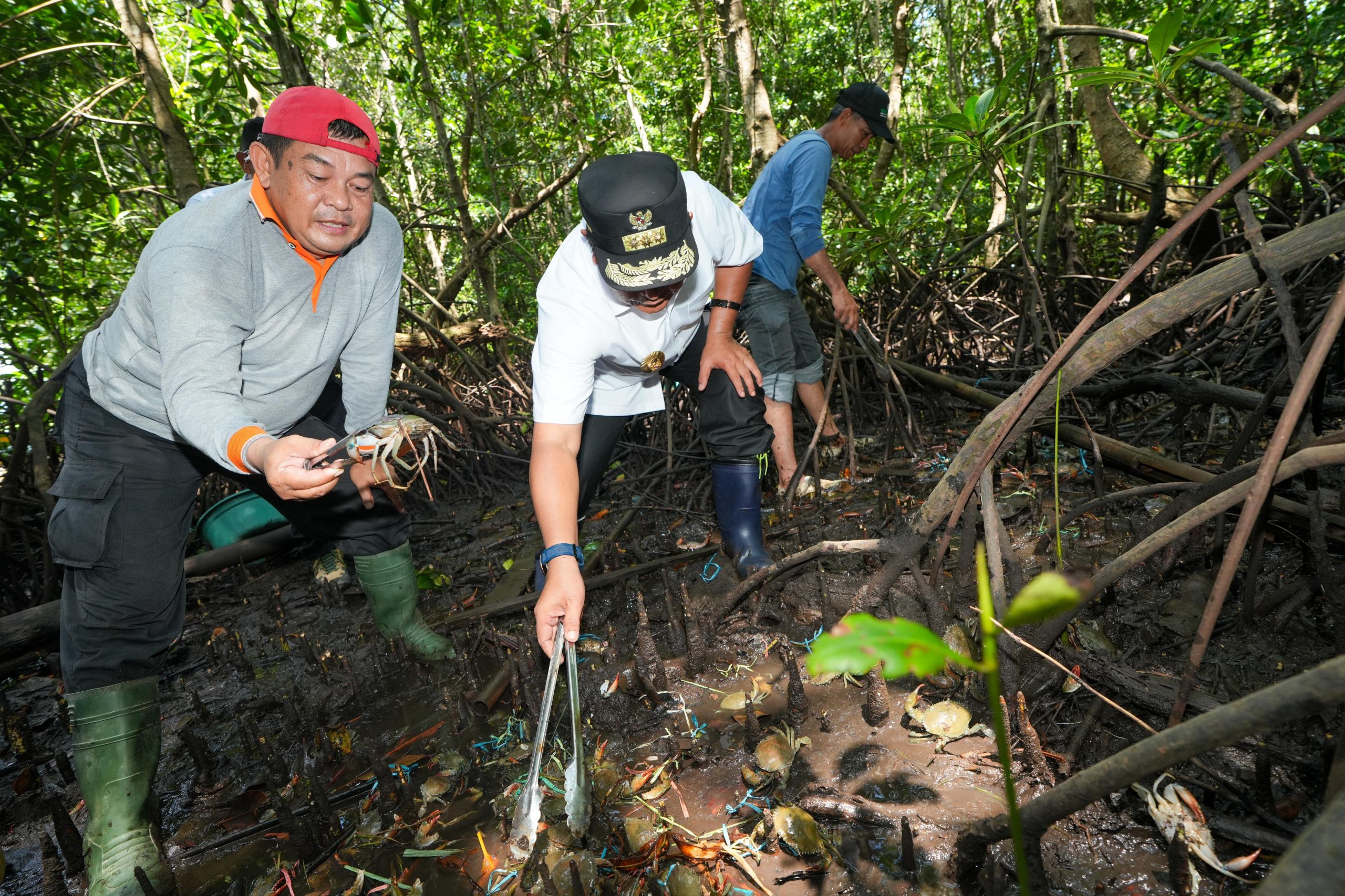 MAMUJU, RelasiPublik.id–Dalam rangka HUT ke 79 RI, PJ Gubernur Sulbar Bahtiar Baharuddin bersama seluruh Forkopimda Sulbar kembali menebar benih kepiting di hutan bakau area Pangkalan Polairud Polda Sulbar, Kecamatan Kalukku, Kabupaten Mamuju, Selasa 20 Agustus 2024.