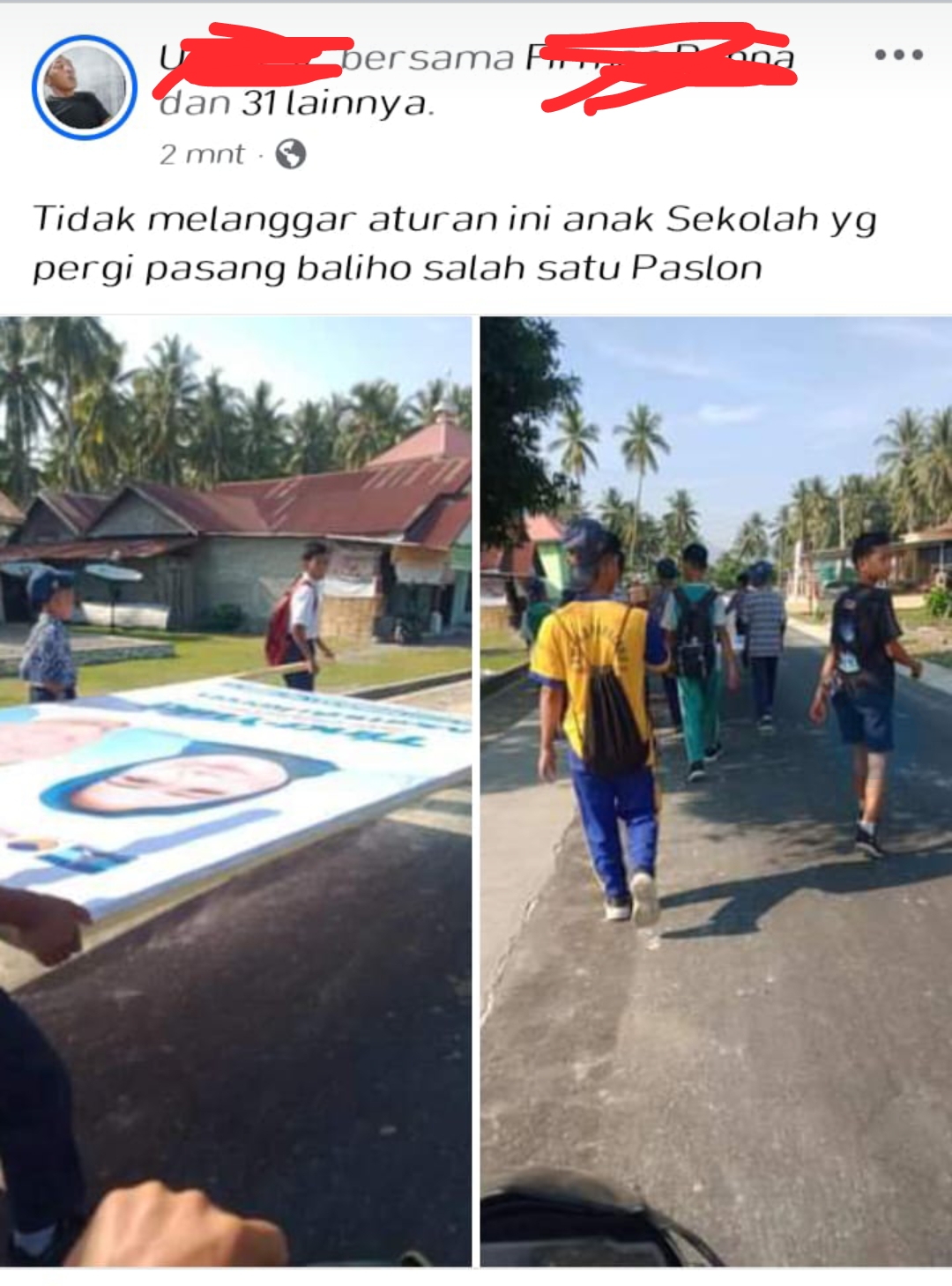 “Saya mencurigai foto tersebut ada intervensi dari kepala sekolah atau anak sekolah tersebut di manfaatkan salah satu Tim Paslon Kita tunggu klarifikasi Bawaslu, Dinas Pendidikan berserta Kepala Sekolah” Tutupnya
