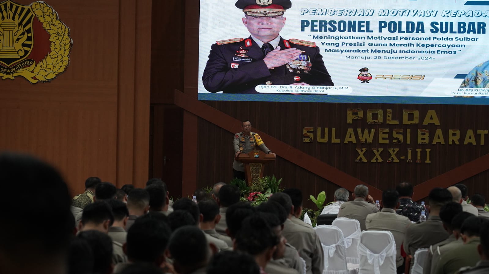 Aula Marannu Polda Sulbar Bergema dengan Semangat: Dr. Aqua Dwipayana Memompa Motivasi Personel