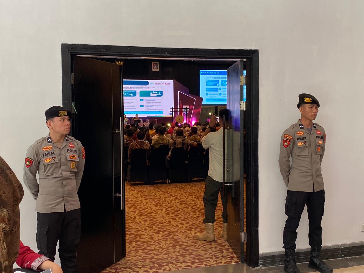 Setiap peserta yang memasuki ruang utama kegiatan Rakornas diwajibkan melalui pemeriksaan ketat oleh petugas. Langkah ini dilakukan untuk mencegah masuknya benda-benda berbahaya dan menjaga keamanan seluruh peserta.