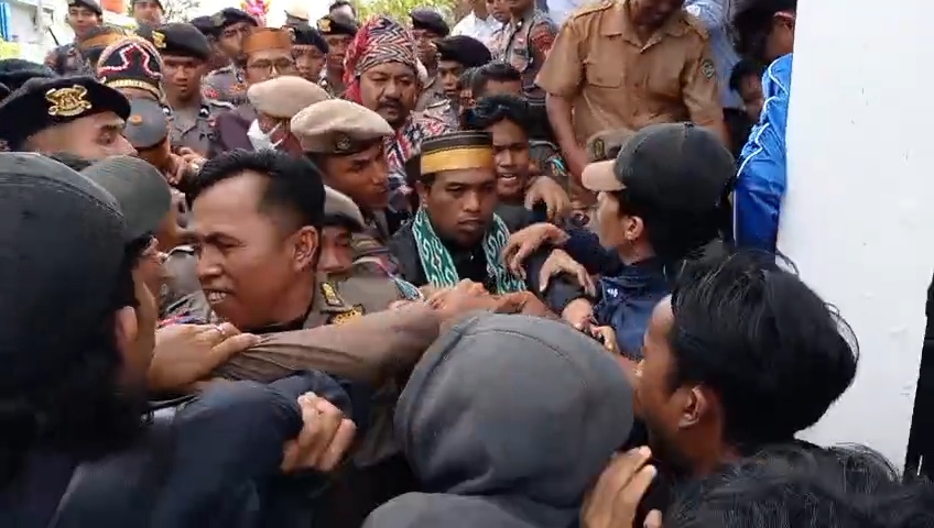 Namun, sekitar pukul 12.00 WITA, suasana memanas usai seorang anggota DPRD menyentuh pundak dan menepuk pipi salah satu massa aksi.