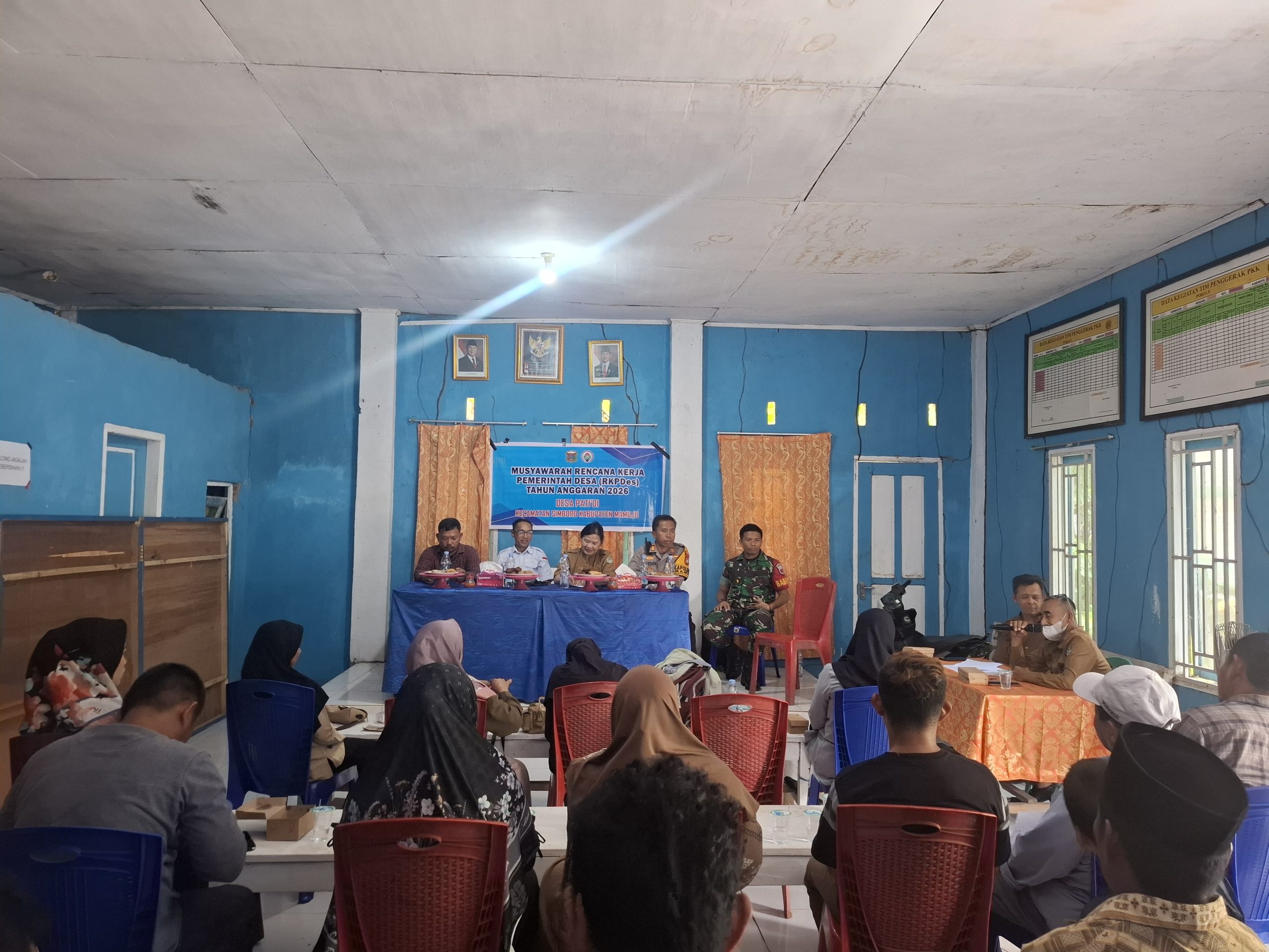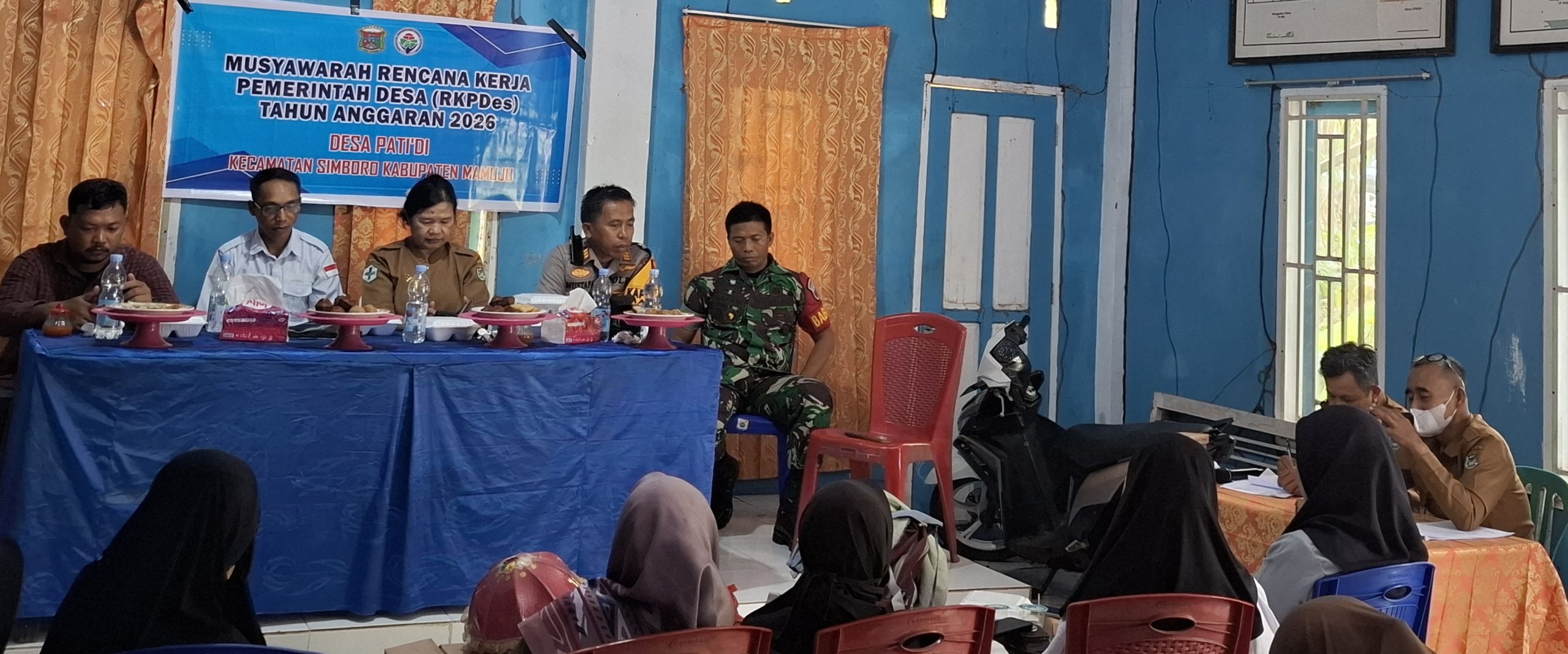 Kegiatan MUSDes ini berlangsung di Aula Kantor Desa Pati’di dan dihadiri oleh berbagai elemen penting masyarakat, di antaranya Kapolsek Mamuju, pendamping desa, aparat Desa Pati’di, penyuluh KB, TP PKK Desa, Perwakilan puskesmas Botteng , tokoh masyarakat, pemuda desa, Bhabinkamtibmas, dan Babinsa.