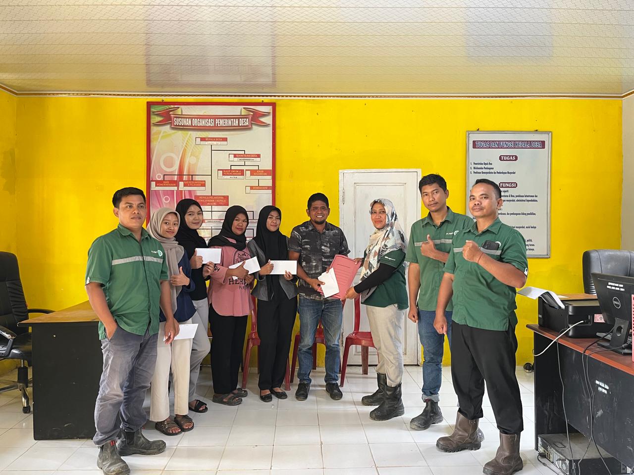 Penyerahan simbolis dilakukan di Kantor Desa Ako oleh Asisten CSR PT Pasangkayu, Kartina, disaksikan perangkat desa dan tim CSR perusahaan.